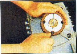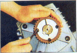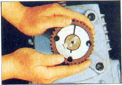 3.將緊固螺釘退出后,再擰入退出螺釘孔,用力擰入,錐套與帶輪松動分離,然后取下。