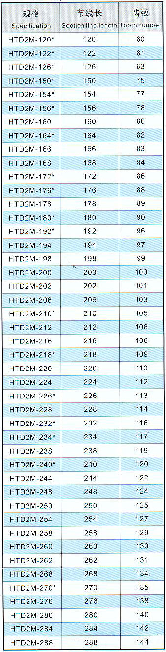 HTD2M型(節距pitch=2.00mm)