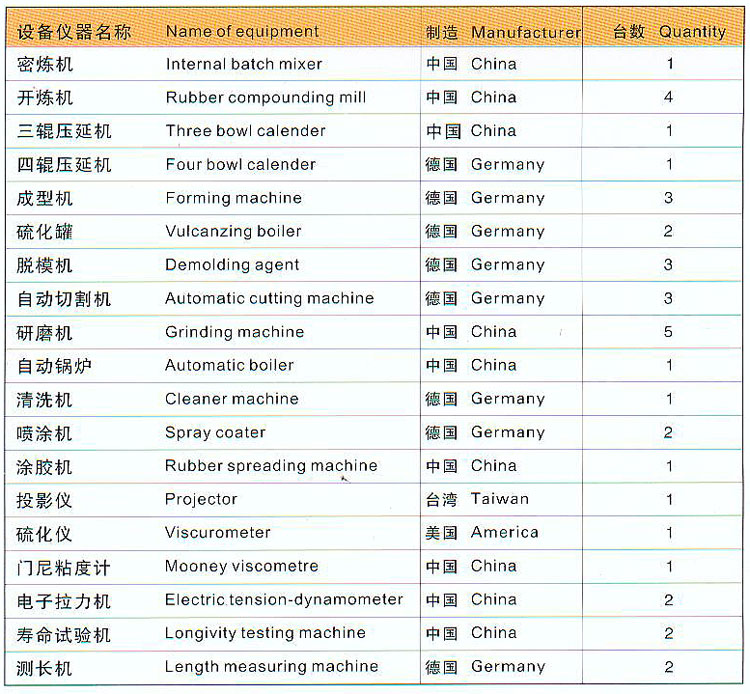 主要生產(chǎn)、測試設(shè)備清單 (List of main producing and testing equipment)